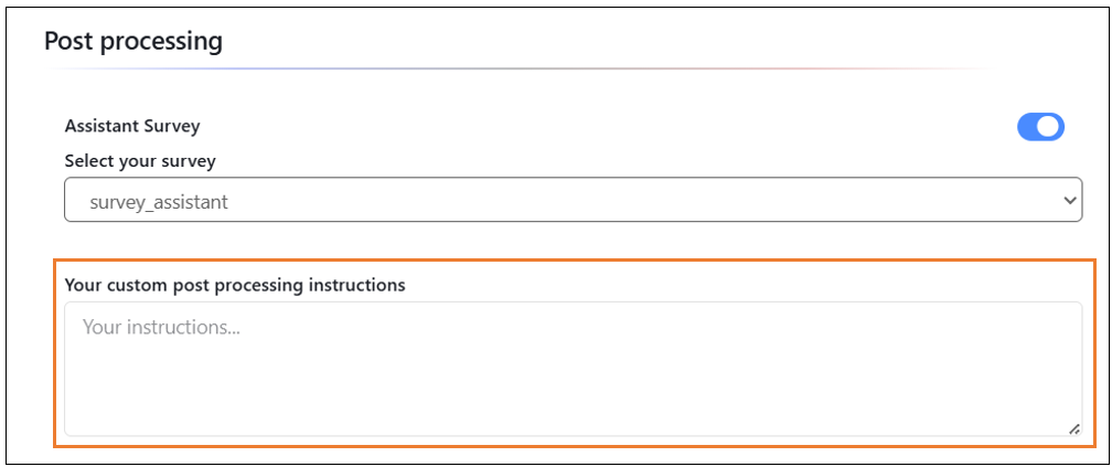 Custom Post Processing Instructions A new "Your custom post processing instructions" field has been added to the Post processing section of the AI Assistant settings.