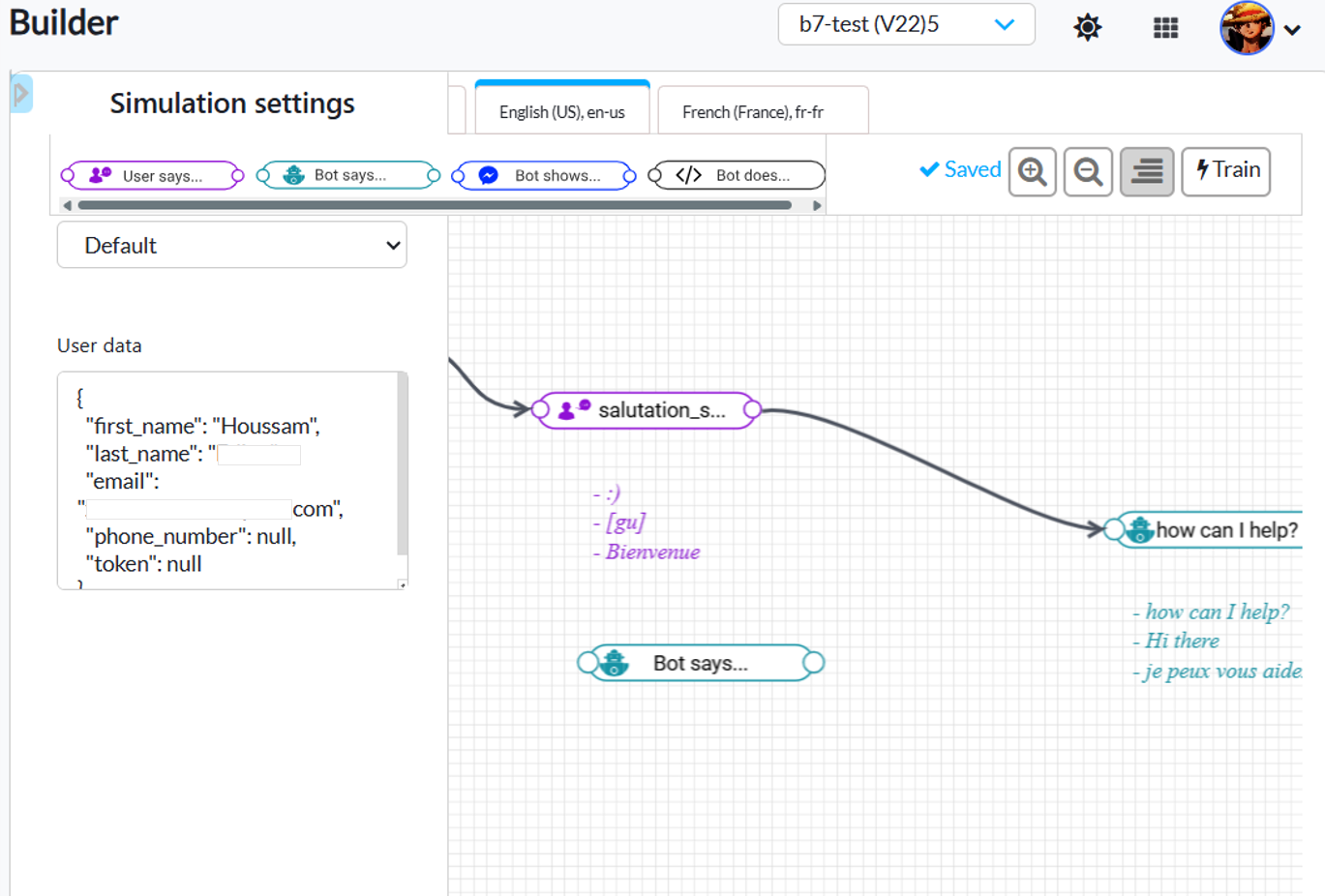 - Via Node.js: By setting the user_data.preferred_translation_language = "en-us" variable within the bot's logic.
