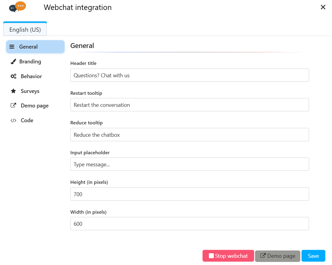 - Improved: Redesigned the Webchat settings into a new "Branding" section.