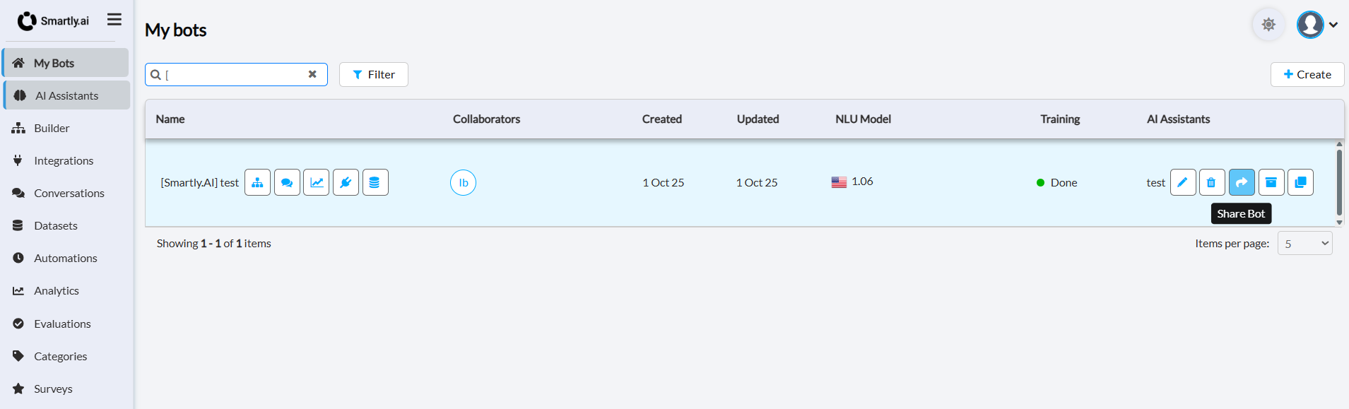 If he is already a user of Smartly.AI, he will directly see the shared bot in his dashboard.