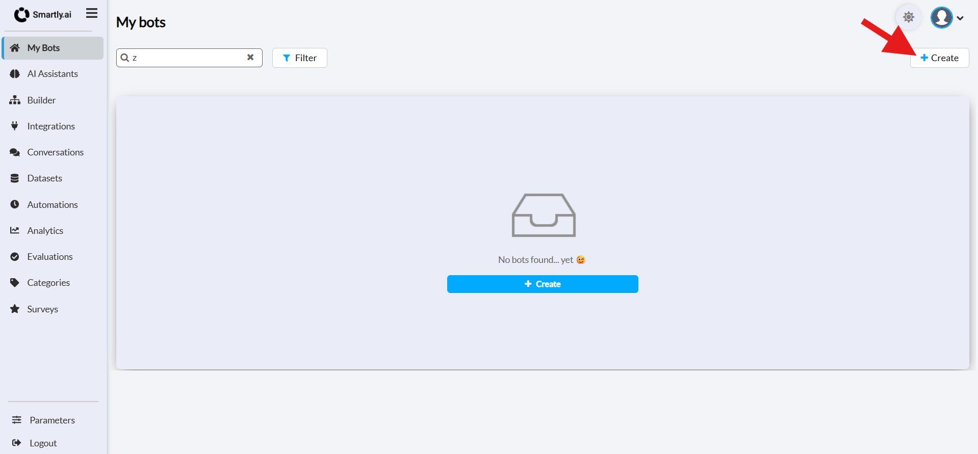 Once you click on "Create", not only is your bot created, but an assistant with exactly the same name as your bot is automatically generated and linked.
