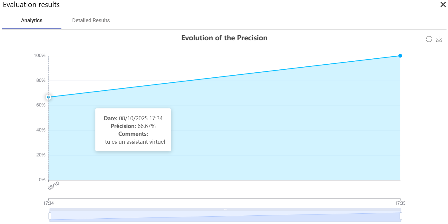🔄 Relaunch Evaluation: This runs the exact same test again. This is very useful for verifying results or for running an A/B test after you've made a small change to the bot's configuration or prompt.