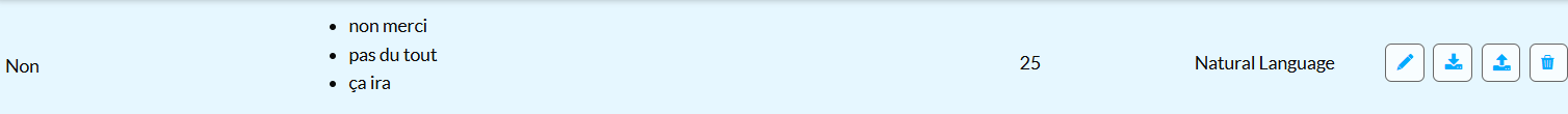 On the right side of each intent row, you will find a set of action buttons that allow you to manage each intent individually: