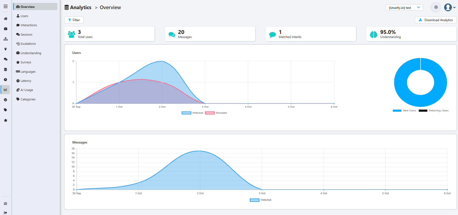 The first report you will find in the analytics section is an overview with the most important metrics.