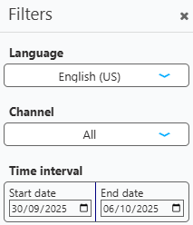 - The language filter allows you to select the default or preferred language (if any) of the conversation.