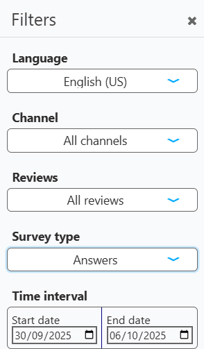 - By Survey type: Narrow down the results based on what was being rated. The available types are: