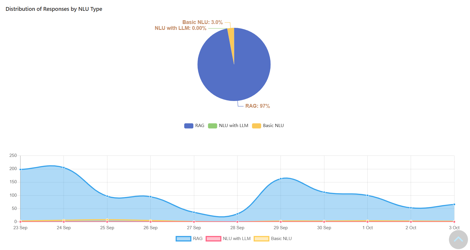 This pie chart provides a powerful insight into how your bot is understanding and responding to users. It breaks down the responses based on the technology used: