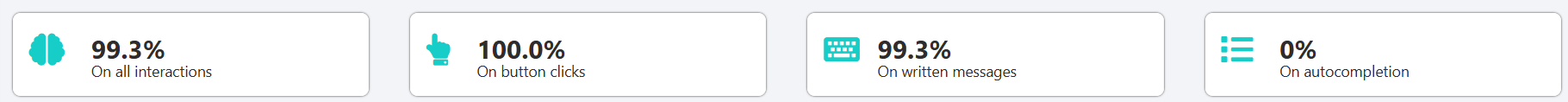 - Understanding rate on button clicks: Number of clicks messages understood by the bot / number of click messages processed by the bot