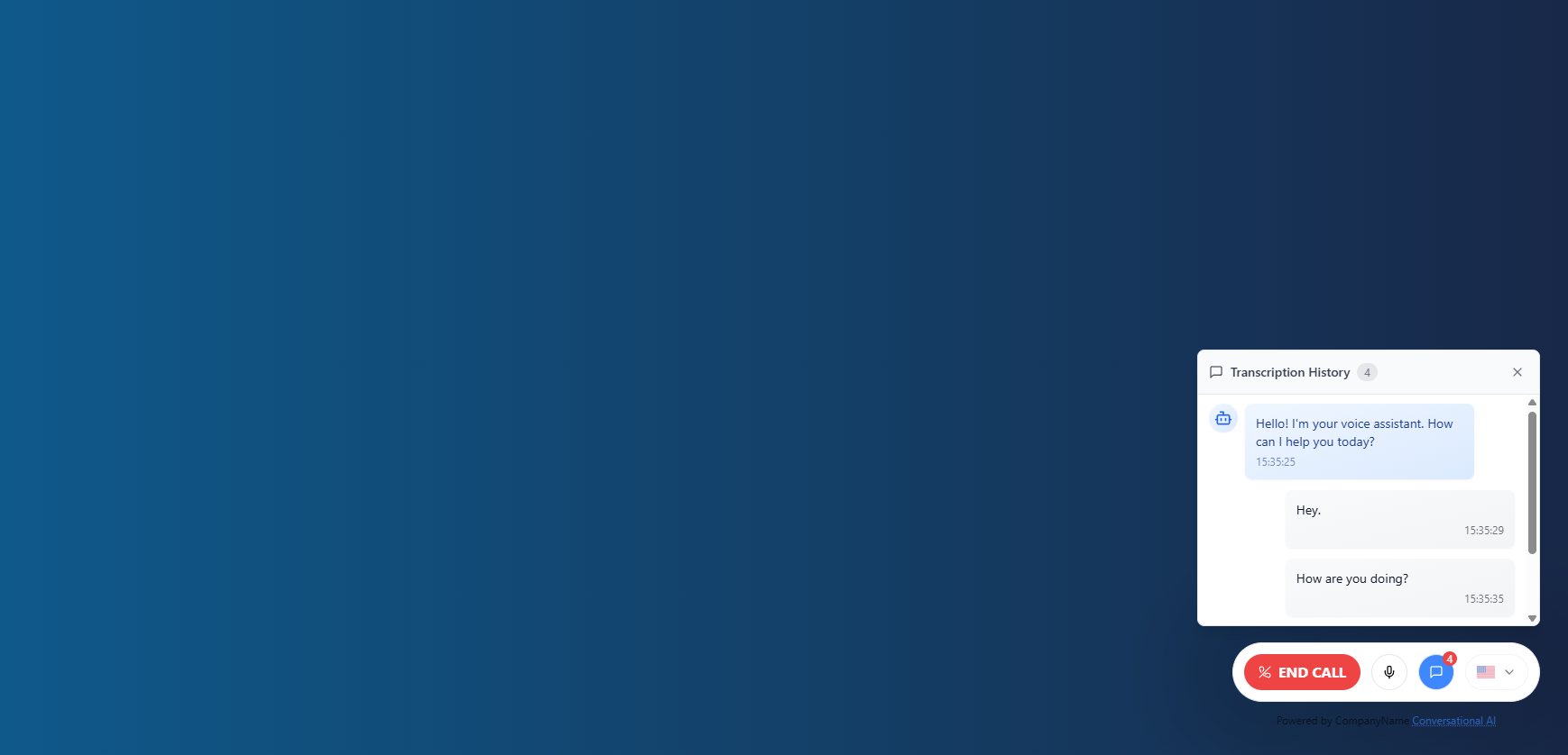 Once integrated on your website, users can interact with the voice chat widget. Here's the complete user journey: